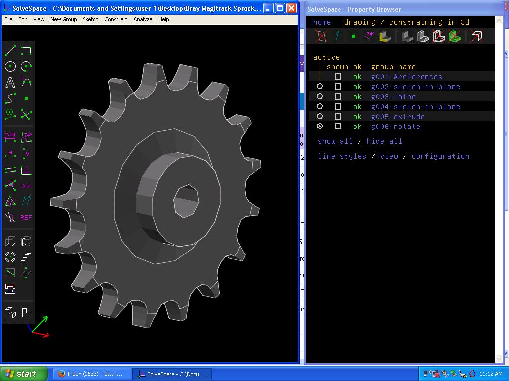 Here is my CAD drawing of this gear of which Im missing 3ea. I used Solvespace version 2.3tilde7c1ca460 (files created on February 16, 2018) to model this and is hand drawn. The gear is made with beziers for the notch and may need to be tweaked to fit perfect. I have also included the STL file which was generated by Solvespace. The more I use this software - the more I like it. I learned this software in January 2018 and my skill level is growing exponentially. It should be just fine for use as an idler with the miniature chain rollers. The mfg chose this oddball miniature chain size rather than standard bicycle chain. My only option is to make my own replacement part.