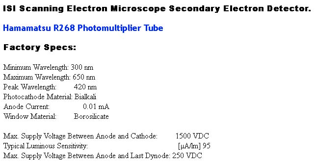 I unscrewed it expecting to find a loose screw and save myself from an electrical short. But it wasnt like that at all. What I found was a tiny piece of glass and this piece of glass was the"belly button" when a tube is blown and sealed by the glassblower or machine. So I knew that the photo multiplier was bad before I disassembled too much. As I disassembled more I saw a large crack and a white cloud ring inside the tube and all of the pins were crooked and bent in all directions. (Is it possibole someone tried to unscrew a vacuum tube as if it was a lightbulb - yikes) Here are some photos, and I need to start looking for a Hamamatsu R268 Photomultiplier Tube as mine is broken from the previous owner bumping into the sensor and it dropping on the floor most likely (or possibly sabotage) I will need to make a replacement plastic mount on my lathe but that is not my big concern - finding the tube is probably one thing that caused my SEM to almost get scrapped. I see an ebay tube with Make Offer and I may try to make an offer on it. I see one sold for $40 back in March of 2012 when I do a google search but I may not get so lucky to find one at that price. Maybe the reader has one they can sell me?